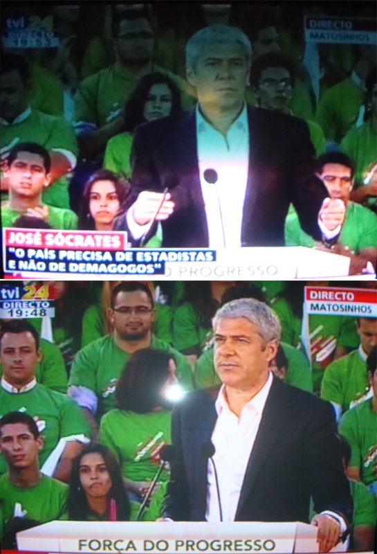 Primeiro, um dos raros momentos de autocrítica alguma vez ouvidos a José Sócrates e que se pode ver nas palavras do insersor de caracteres, na primeira fotografia: «O país precisa de estadistas e não de demagogos.»